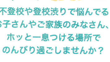 不登校のお子さんや親御さんが気軽に話ができる場所、家以外の居場所を提供する。不登校のお子さんや親御さんが気軽に話ができる場所、家以外の居場所を提供する。